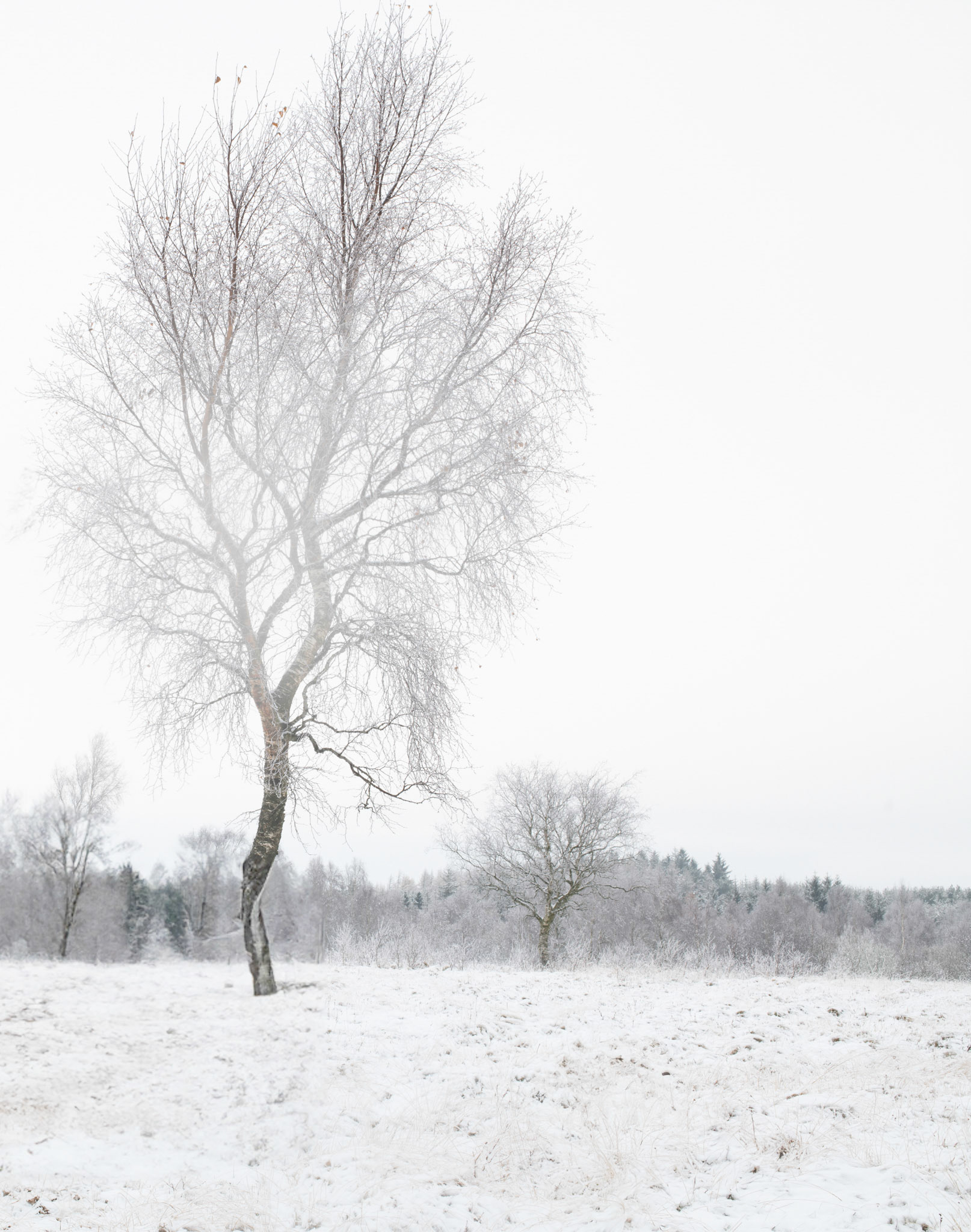 Simple photograph of two trees on the side of a snowy hill. This was taken during the first phase of lockdown. The hills were covered in snow, it was white as far as the eye can see, apart from these two trees that stood out.